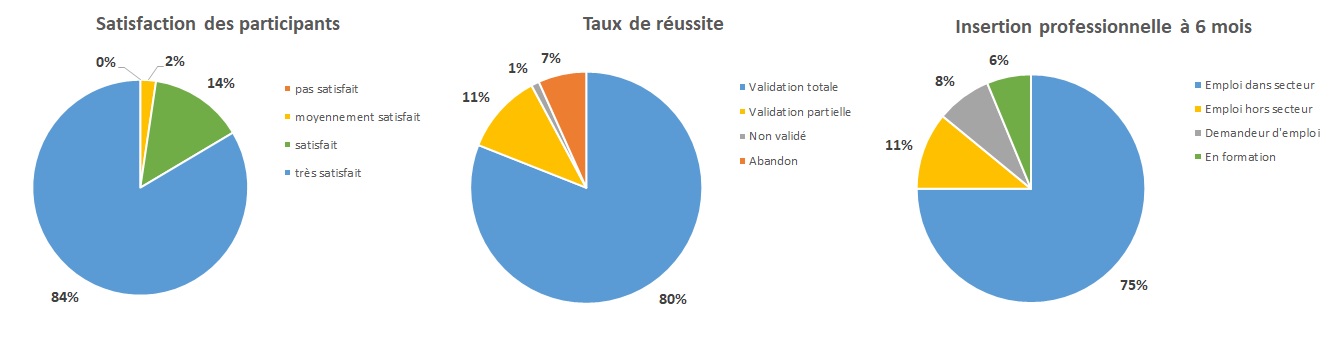 Statistiques de la formation BPJEPS (résultats cumulés de 8 promotions : 90 stagiaires)